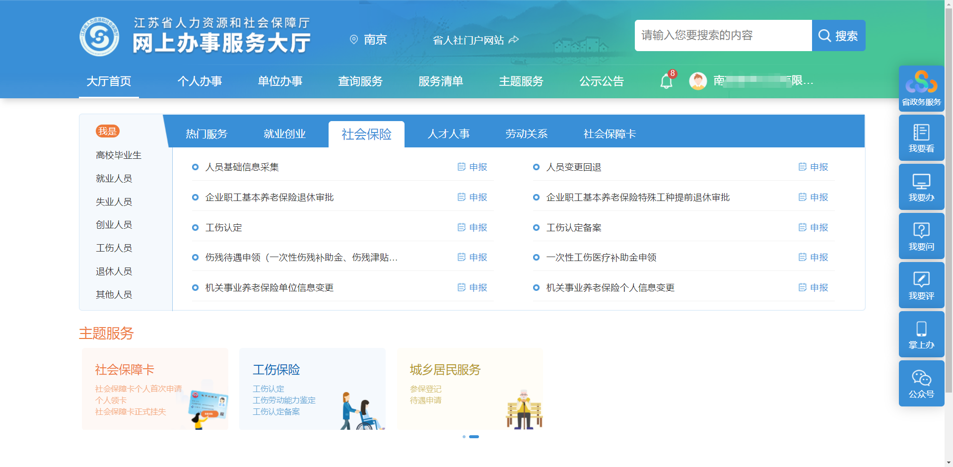 14、点击右侧南京人社网上办事服务大厅,进入南京人社网上办事服务大厅平台页面进行业务操作