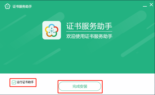 5、勾选运行证书助手,点击完成安装,会自动打开服务助手界面