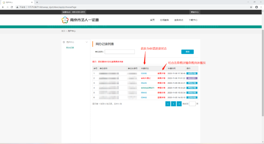 10、点击应用后,跳转至南京市人力资源和社会保障局界面,点击用户登录